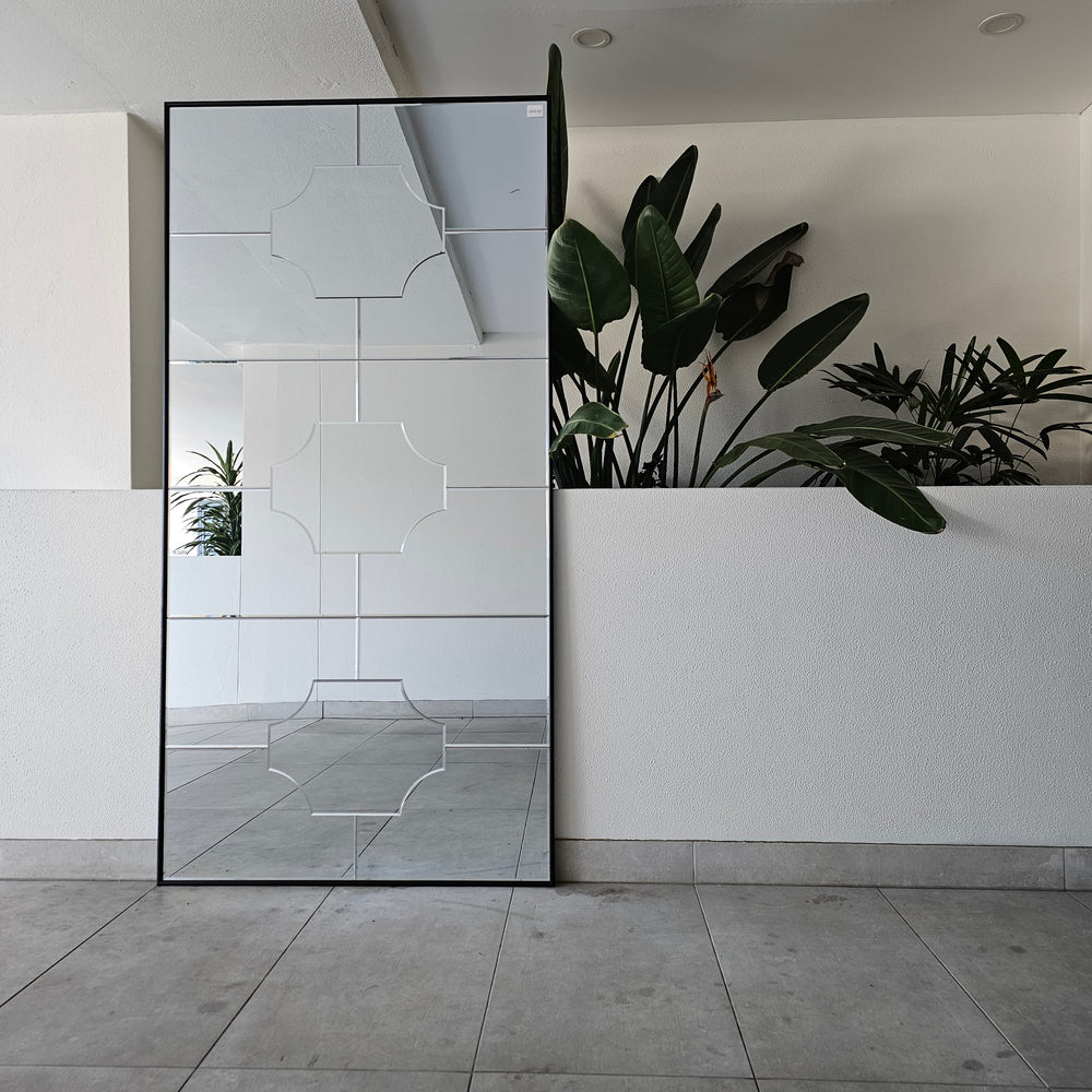 Introducing our Striking Panelled Mirror, a true work of art for your living space. Its intricate panelling design creates a mesmerising and unique visual display. Whether hung on the wall or styled leaning, it effortlessly adds glamour to any space.